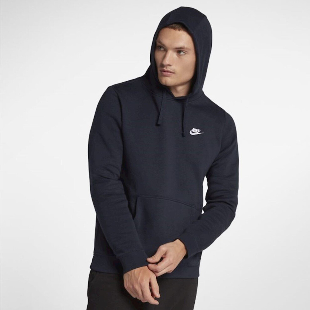 (Navy, M) Nike Mens Club Fleece Pullover Hoodie