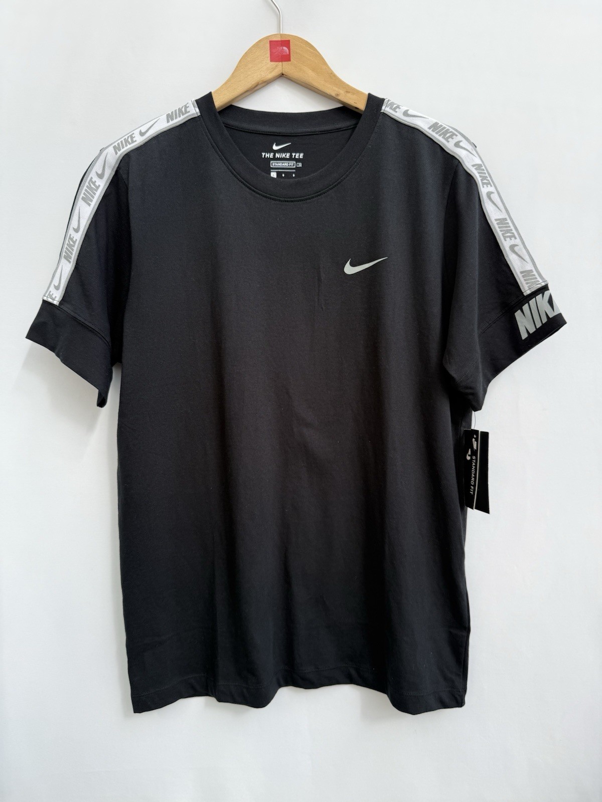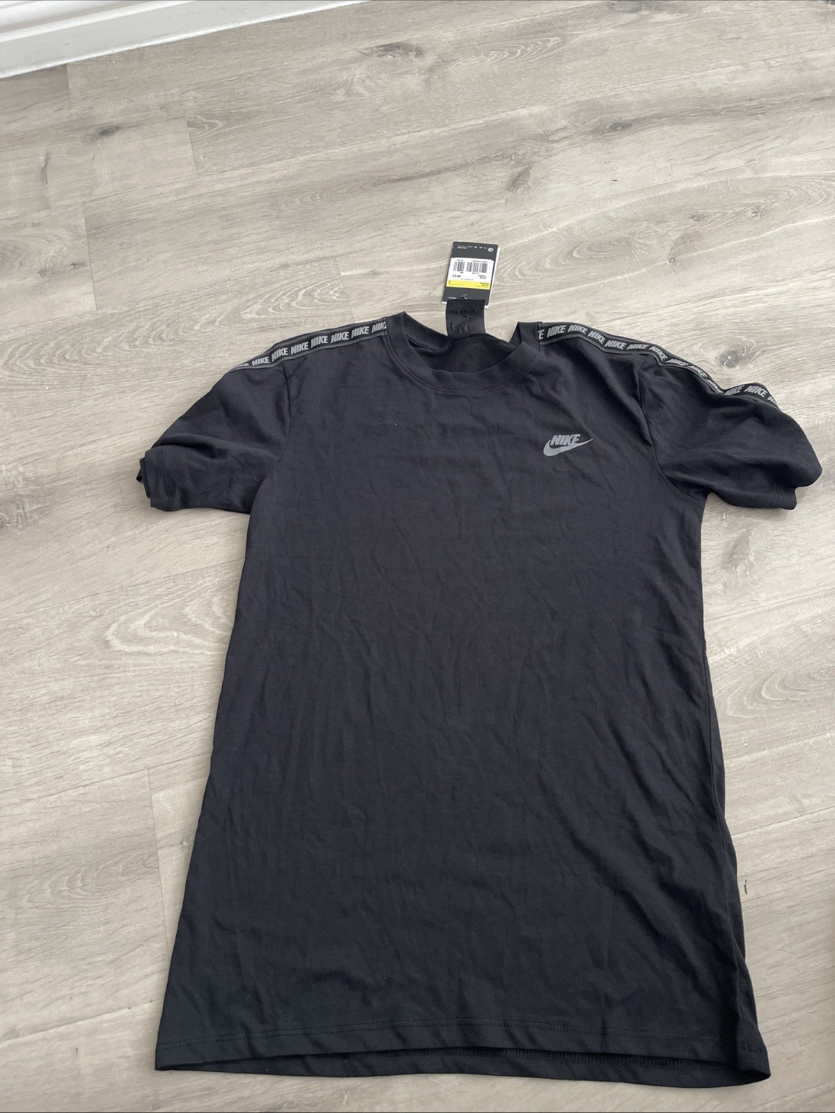 Nike Repeat Logo Tape T-Shirt Black Cotton Short Sleeve Casual Mens Small BNWT