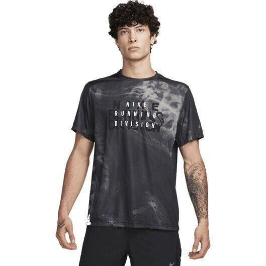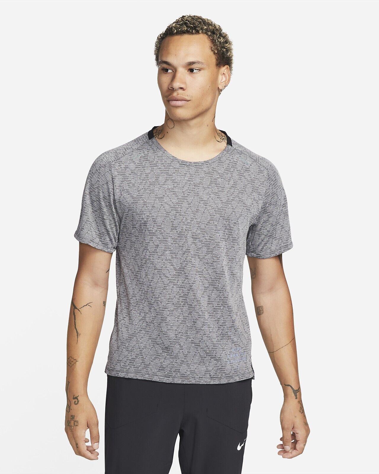 Mens Nike Dri-FIT Run Division Rise 365 Running T Shirt Top Black Grey Medium