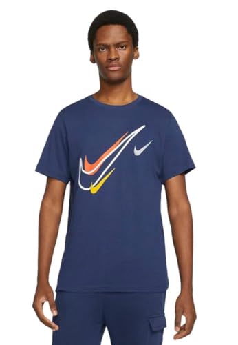 NIKE Men's Court Swoosh Logo T-Shirt Short Sleeve Classic Tee White DQ3944 100 New (UK, Alpha, L, Regular, Regular, Navy)