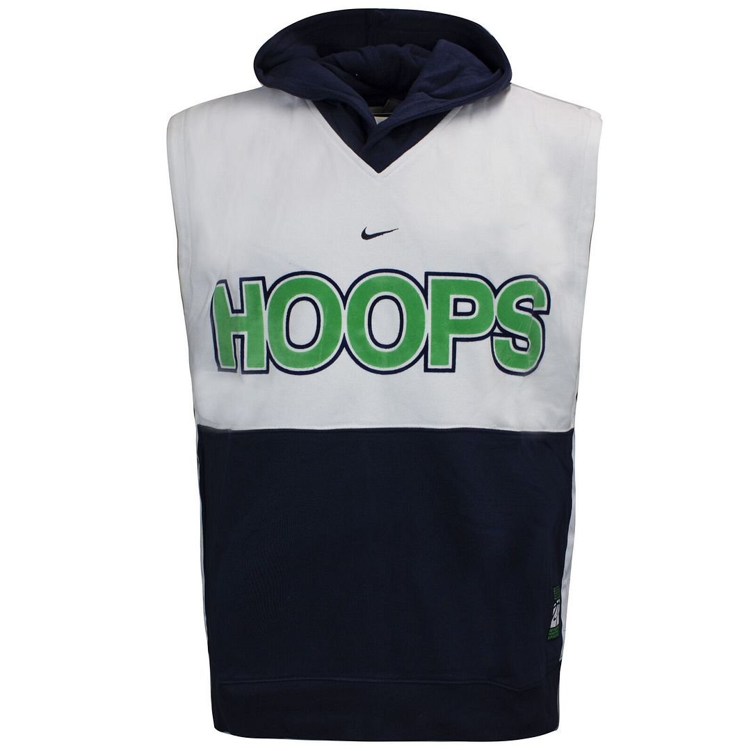 Nike HOOPS Logo Sleeveless Navy Blue White Mens Hooded Vest 137685 451 Cotton - Size Large