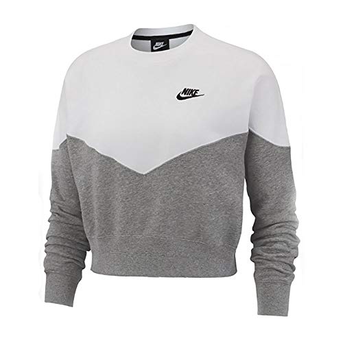 Nike Women's Fleece Crew Sportswear Heritage, Dark Grey Heather/White/Black, X-Small