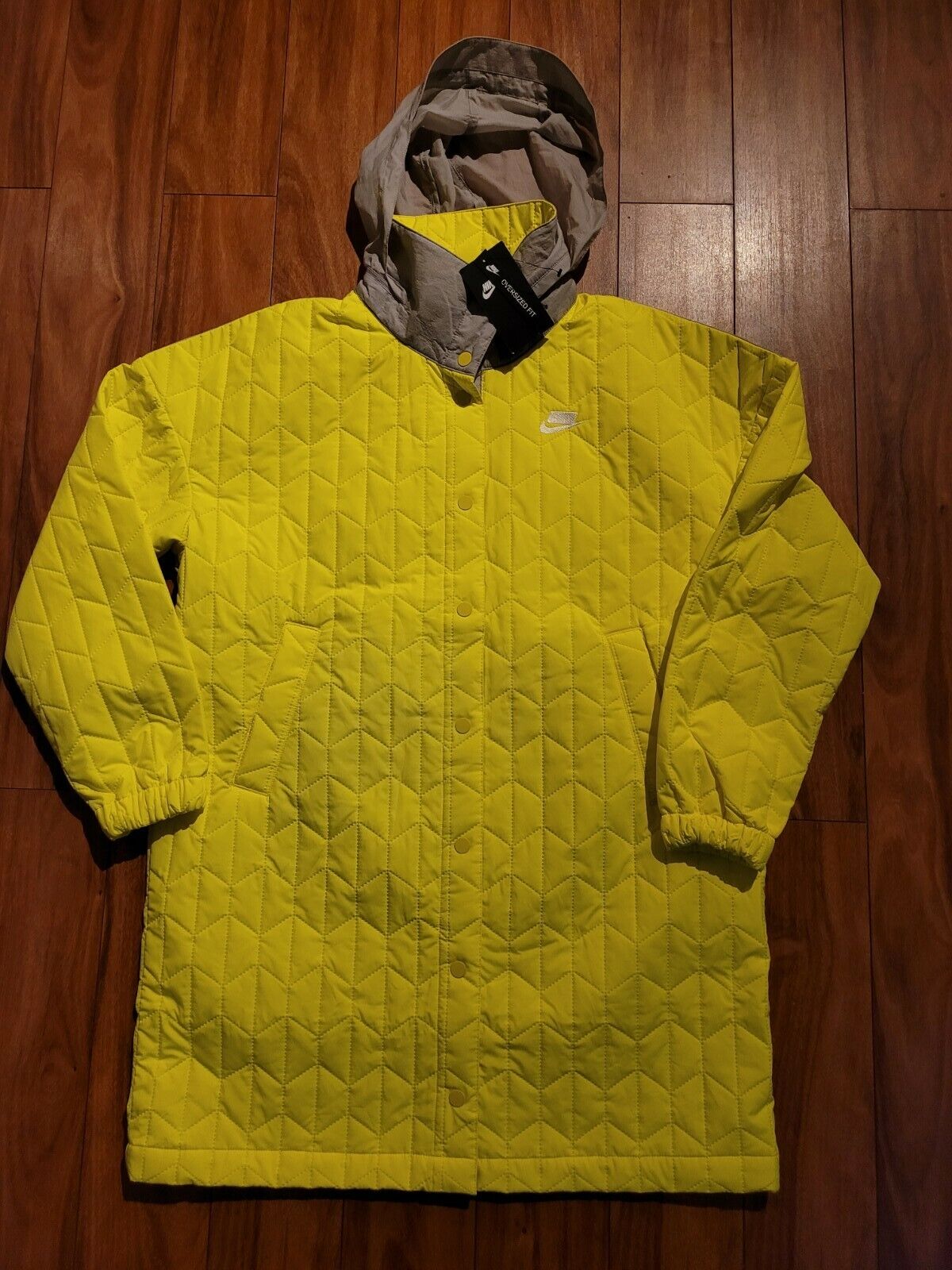 Women’s Nike Oversized Sportswear Jacket Sz S Volt Grey CU6691 757