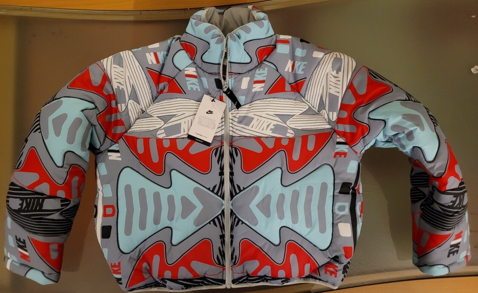 Nike Older Kids Synthetic Fill Hooded Puffer Jacket Blue Red Size XL Age 13-15