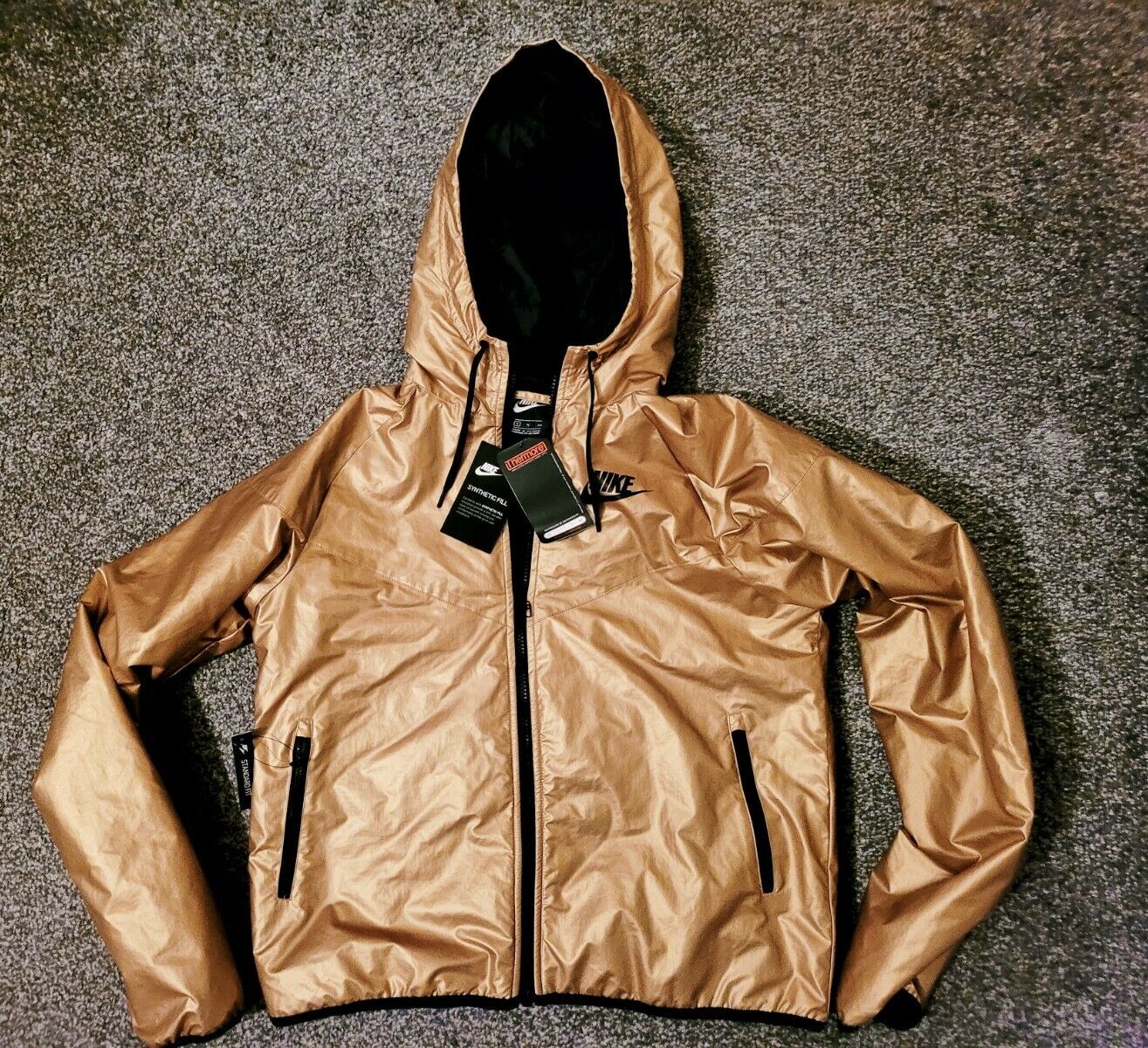 Women’s Nike Synthetic Fill Thermal Jacket Sz S Gold Black New CJ2261 707