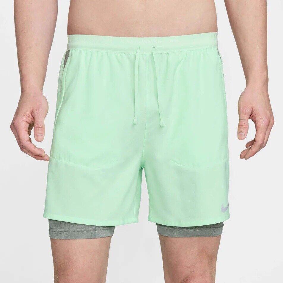 Men's Nike Stride Dri-FIT 5" Hybrid 2 In 1 Running Shorts Vapor Green Size Small