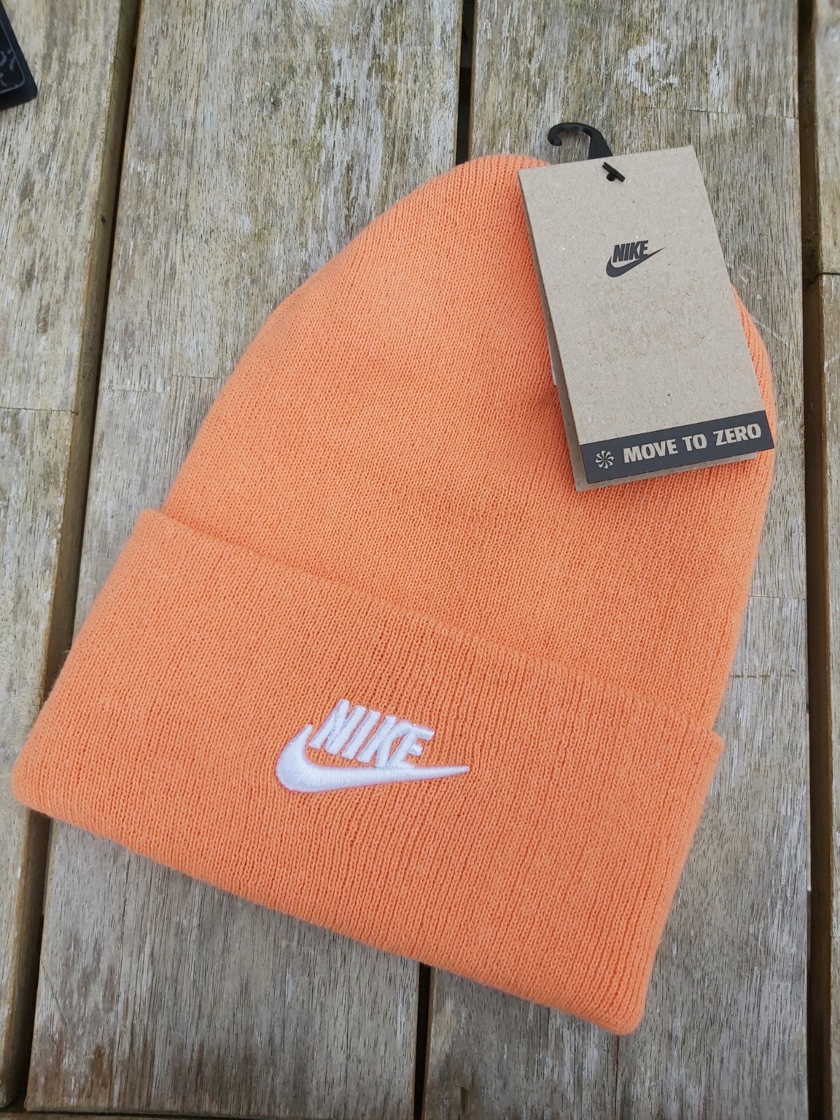 Genuine NIKE Orange / White Swoosh Taller BEANIE HAT Unisex DJ6224-871