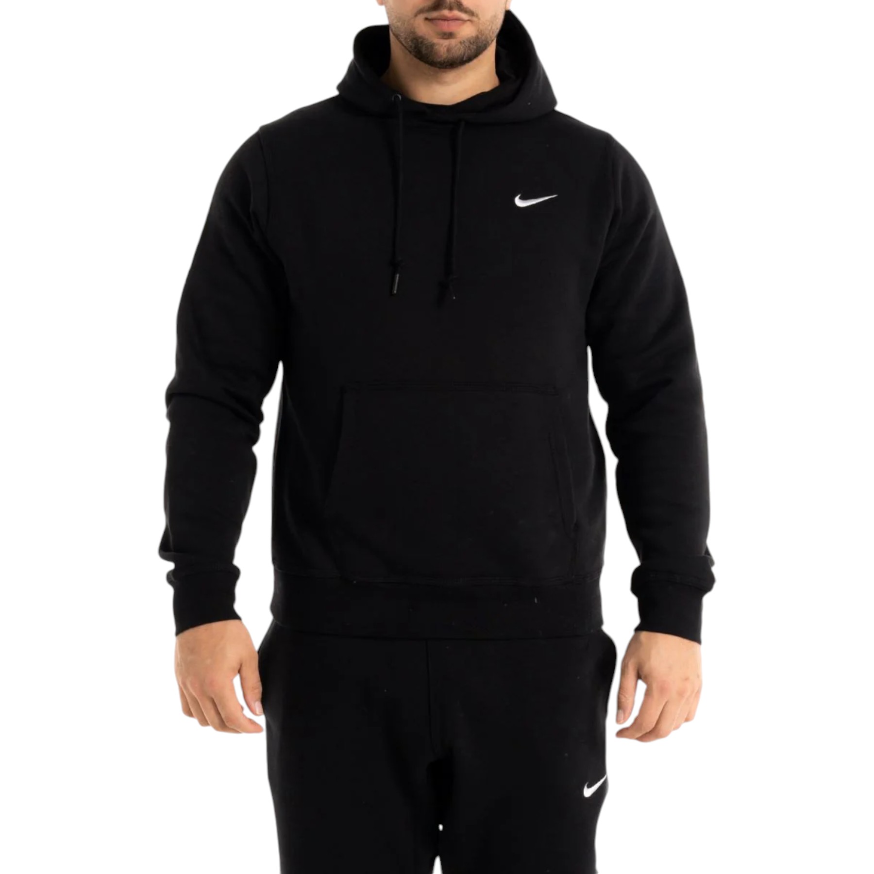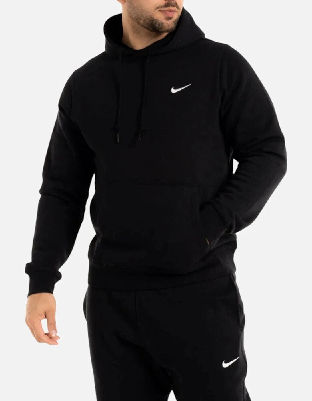 Nike Mens Fleece Hoodie Swoosh Logo Overhead Hoody Pullover Sweat - Black Cotton - Size X-Large