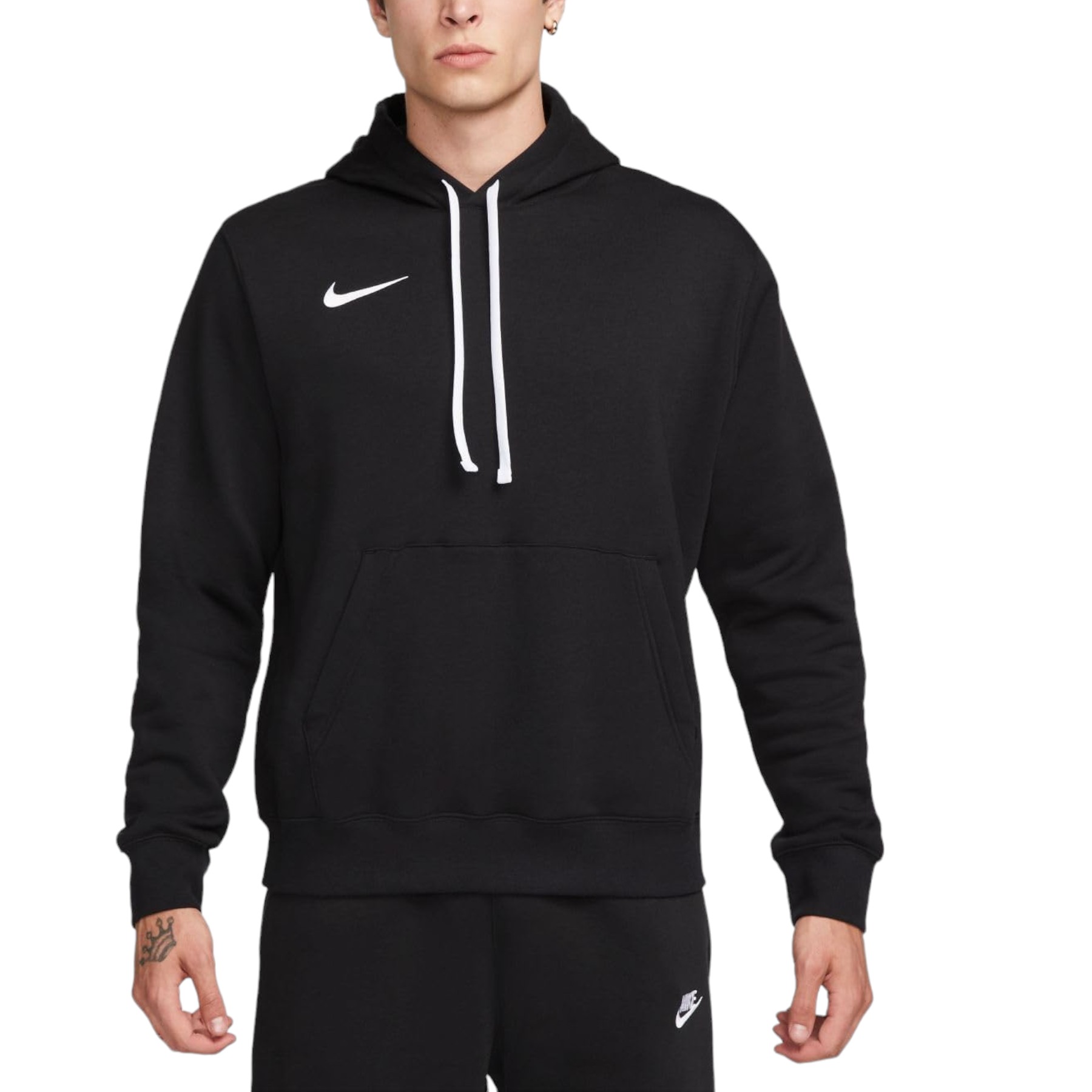 Nike Mens Fleece Hoodie Long Sleeve Swoosh Pullover Soccer Hoody - Black Cotton - Size Large