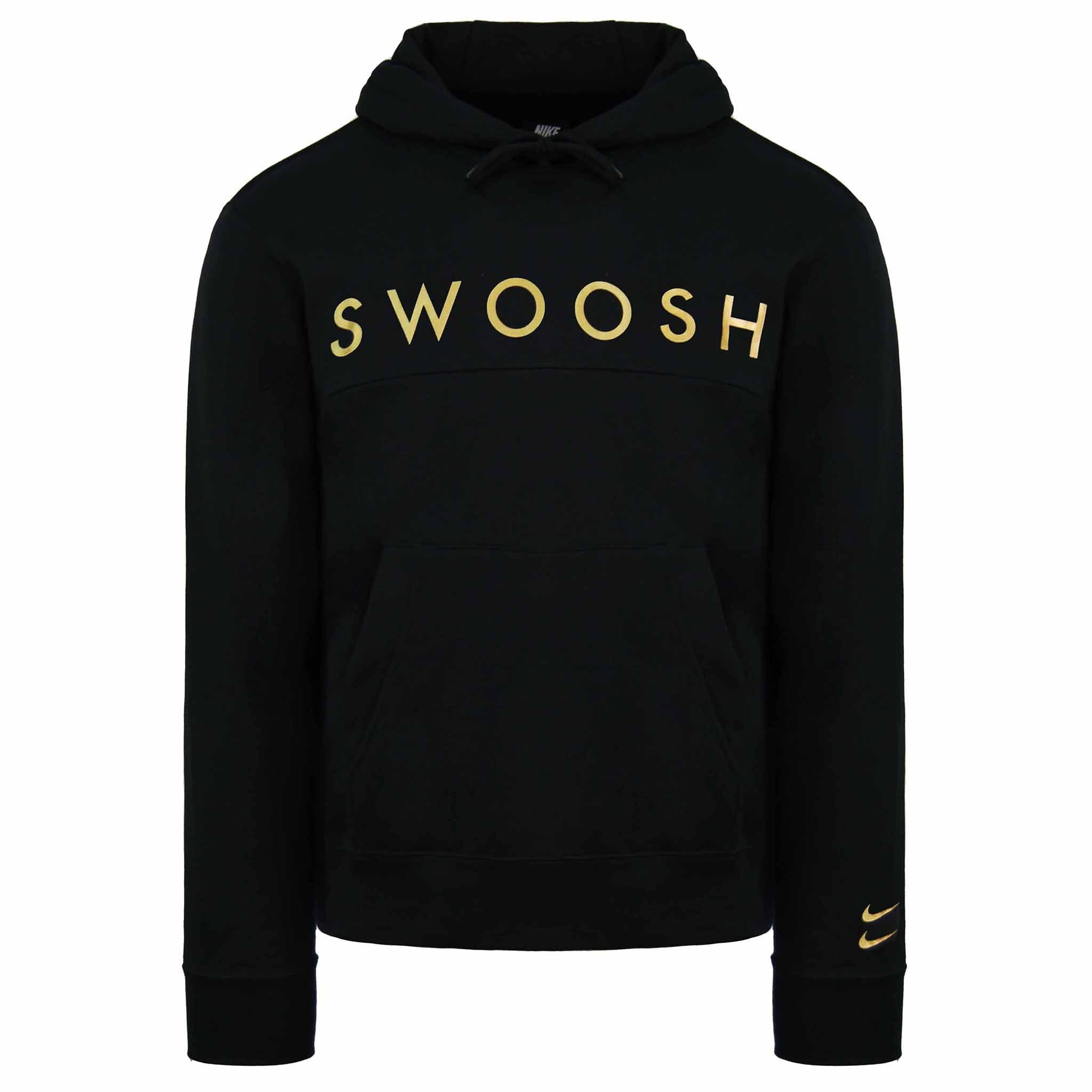 Nike Mens Fleece Hoodie Long Sleeve Swoosh Pullover Soccer Hoody - Black Cotton - Size Medium