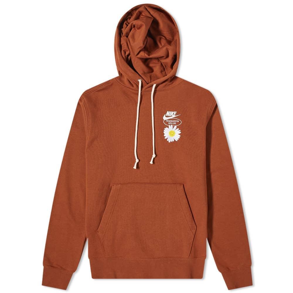 NIKE MEN'S GOOD VIBES PULLOVER HOODIE BROWN FLOWERS SWOOSH COMFY LOUNGE RETRO OG