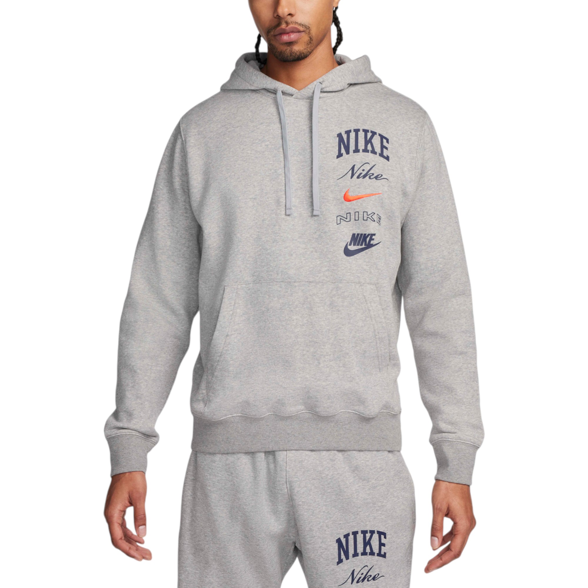 Nike Mens Hoodie Varsity Stacked Swoosh Pullover New Casual Cotton Hooded - Grey - Size Large