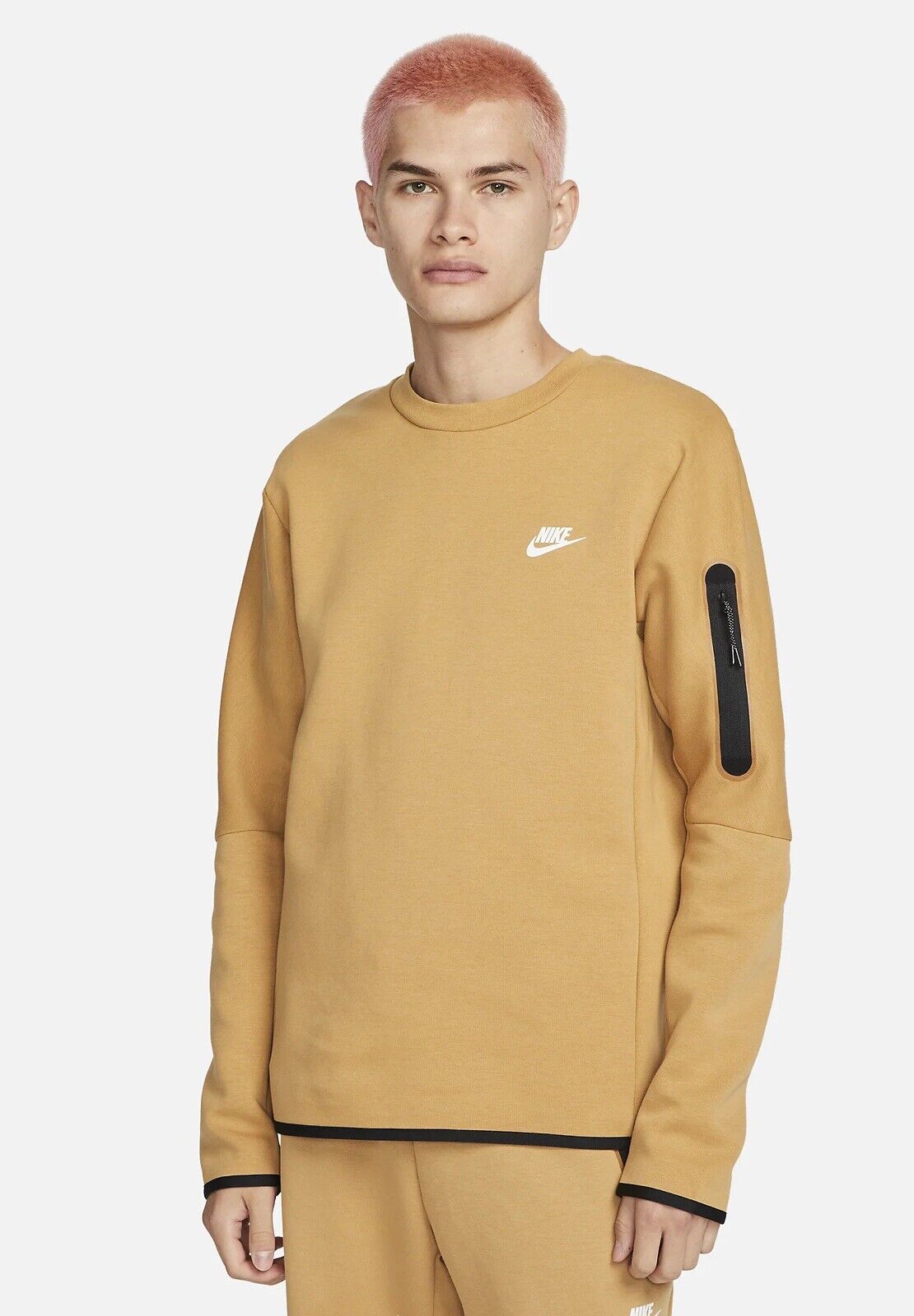 Mens Nike Tech Fleece Sweatshirt Pullover Jumper Crew Neck Gold Size Small