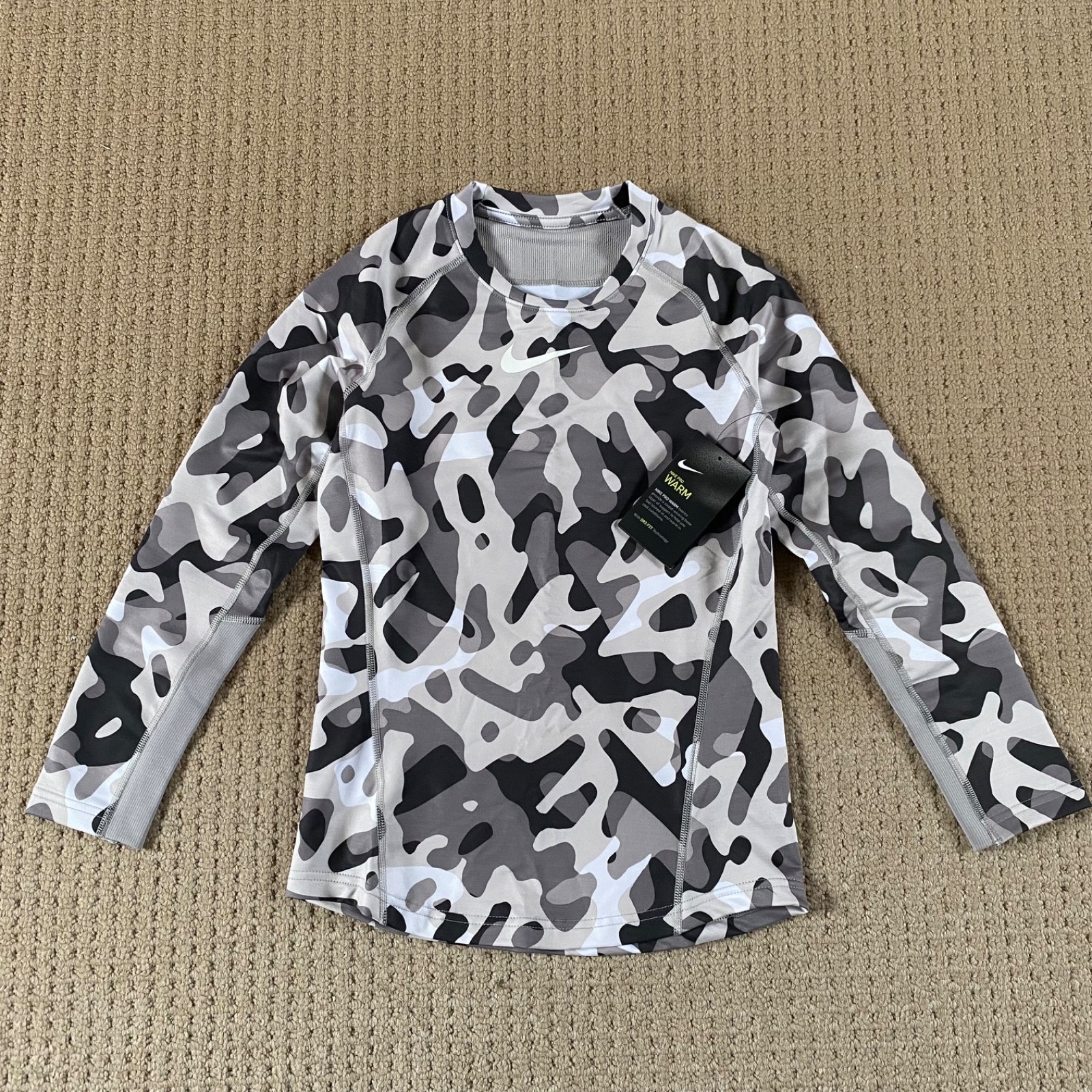 Boys NIKE Training Top Age 10 - 12 Camo Print Pro Warm Dri-Fit Slim Fit