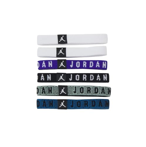 Nike Jordan Hair Tie 6-Pack – Sports Hair Ties for Training, Fitness & Basketball – Elastic Hair Ties, White/Concord/White, One Size