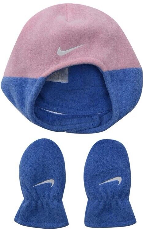 Nike Baby Trapper Hat And Mittens Set Infant Pink Blue Warm Winter Fleece Gift