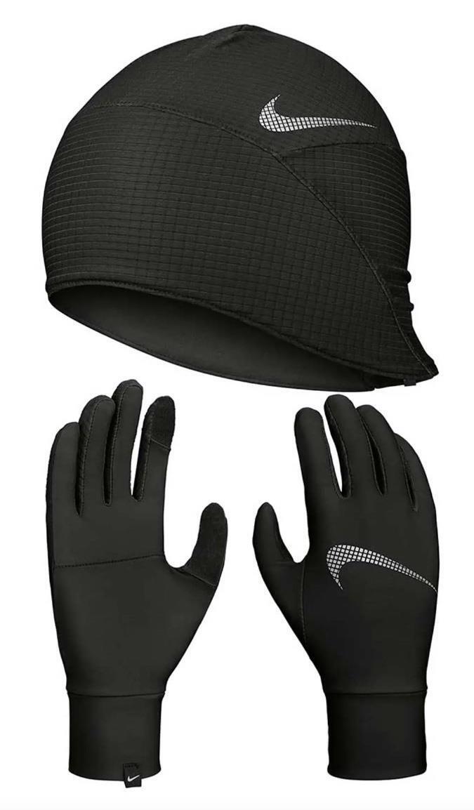 Nike Womens Hat And Glove Set - Winter - Running - Fitness - Black/Silver