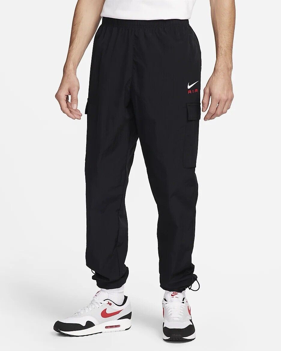 Mens Nike Air Woven Water Resistant Cargo Pants Trousers Black Red Size Small