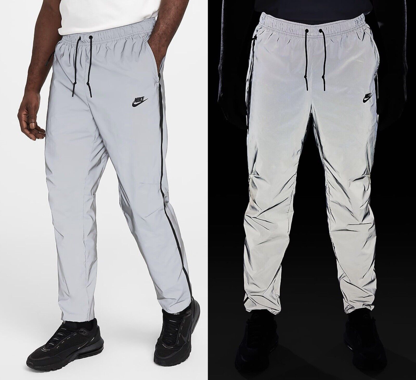 Mens Nike Tech Woven Flash Reflective Pants Trousers Silver Size Extra Large XL
