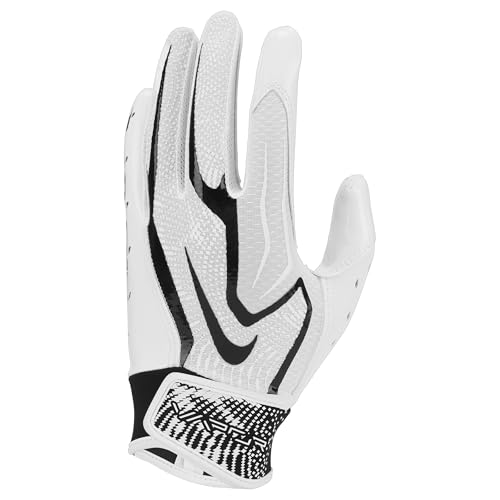 Nike Youth Vapor Jet 9.0 Football Gloves – Junior American Football Receiver Gloves – Lightweight Grip & Comfort for Young Players, White/White/Black, M