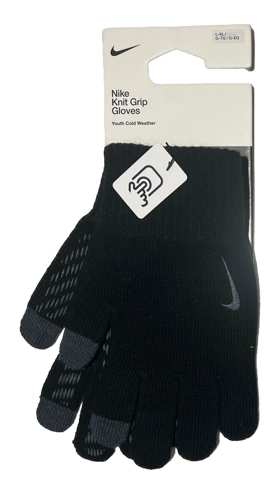 Nike Unisex Youth Knitted Gloves, Black/White, L/XL