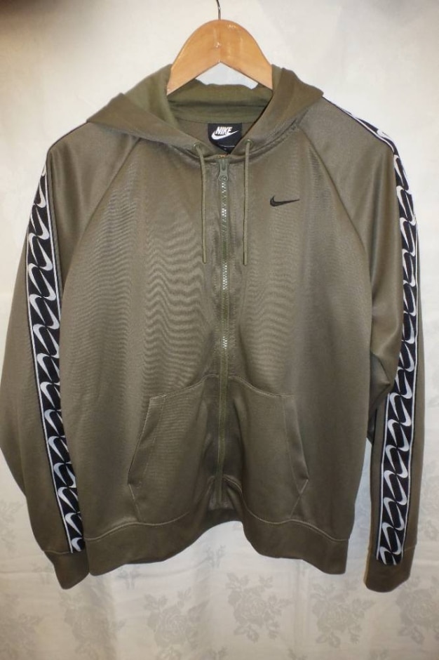 Nike Mens Khaki Green Hooded Zip- Up Jumper Cotton - Size Small