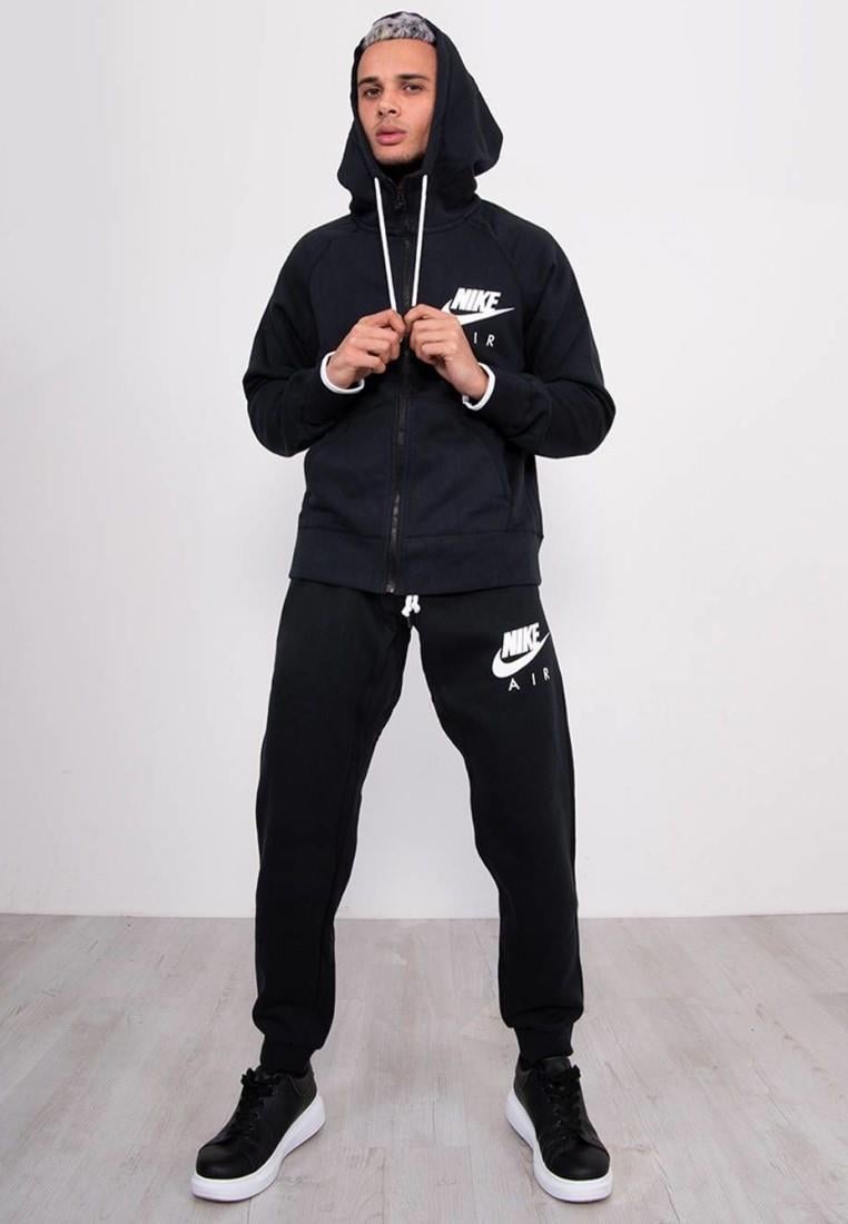 (Black, M) Nike Air Men Full Tracksuit Set Zip Up Hoodie 886044
