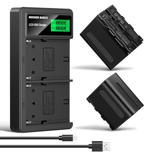 NEEWER Basics 2Pcs NP-F970 7800mAh Replacement Battery Dual USB Charger Compatible with Sony NP-F970 F960 F950 F770 F750 F570 F550 FX3 FX30 A7 Canon R5 Nikon Z8 Camera Handycam LED Light Monitor