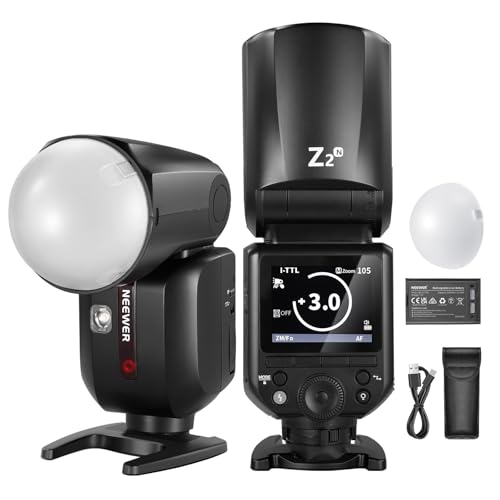NEEWER Z2-N 2.4G TTL Round Head Flash Speedlite Compatible with Nikon Cameras, 76Ws 1/8000s HSS with Diffuser, 2 Modeling Lamps, Upgraded UI, TTL/M Toggle Key, 3000mAh Battery, 600 Full Power Flash