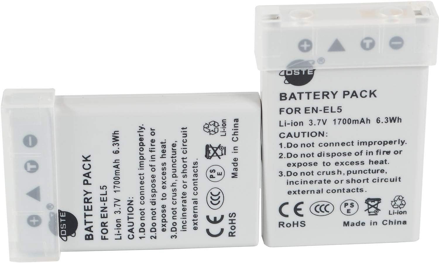 DSTE 2PCS EN-EL5 (1700mAh/3.7V) Battery Compatible for Nikon Coolpix P510 P520