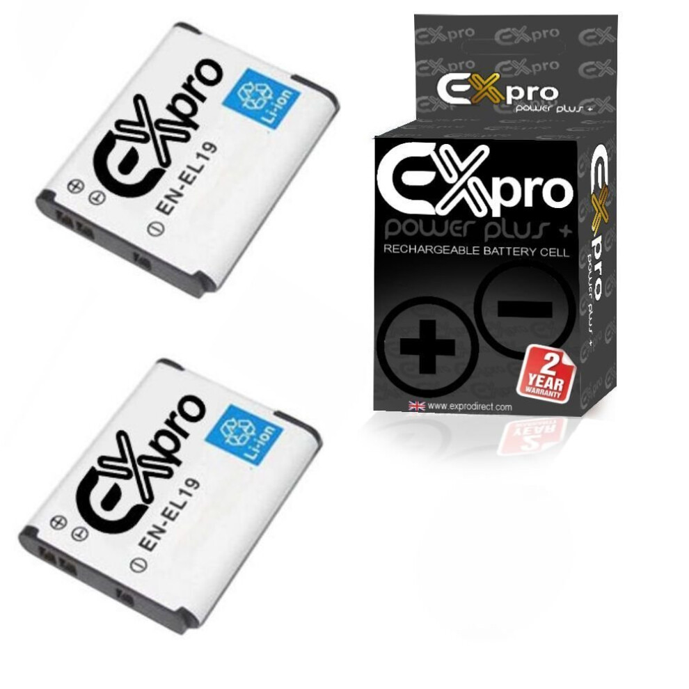 Ex-Pro Replacement Battery EN-EL19 ENEL19 for Nikon CoolPix Cameras - 2 Pack