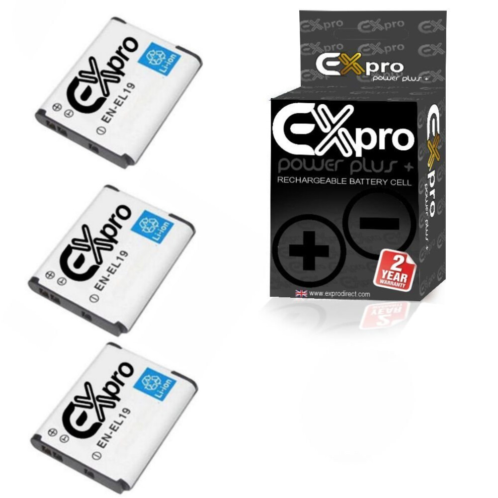 Ex-Pro Replacement Battery EN-EL19 ENEL19 for Nikon CoolPix Cameras - 3 Pack
