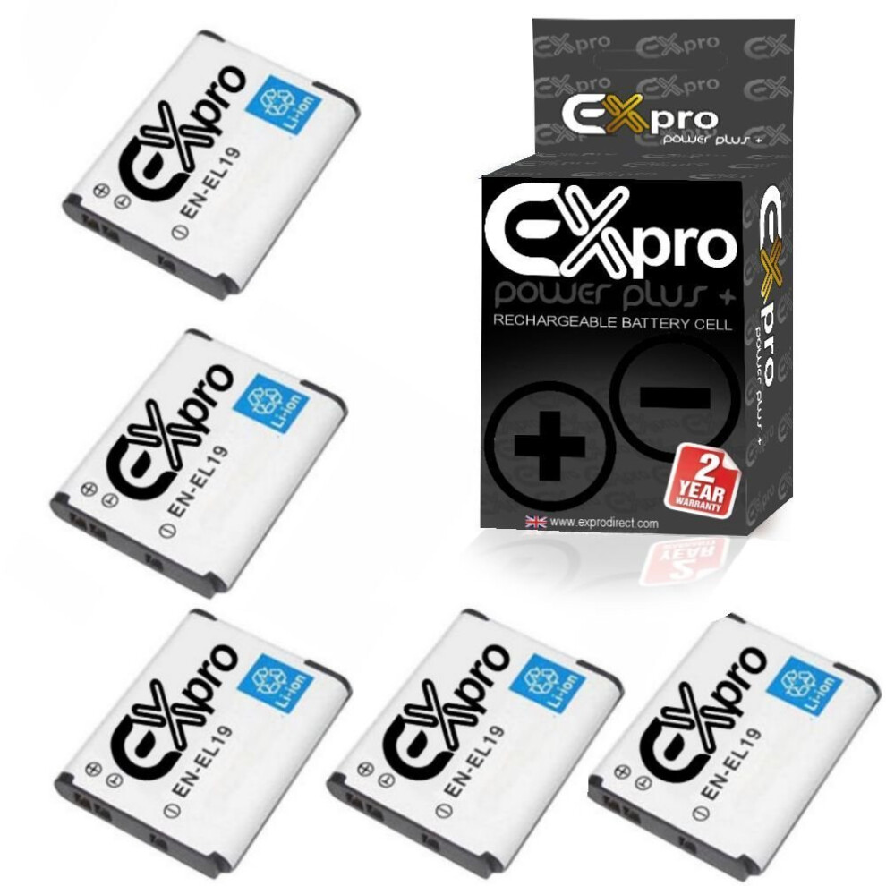 Ex-Pro Replacement Battery EN-EL19 ENEL19 for Nikon CoolPix Cameras - 5 Pack