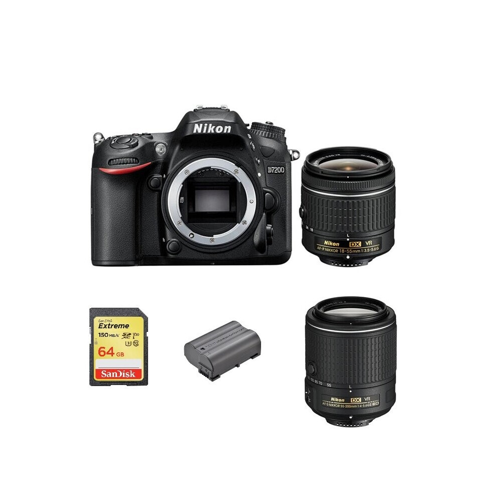 NIKON D7200+AF-P 18-55mm+AF-S 55-200MM+SanDisk Extreme 64G SD+EN-EL15B