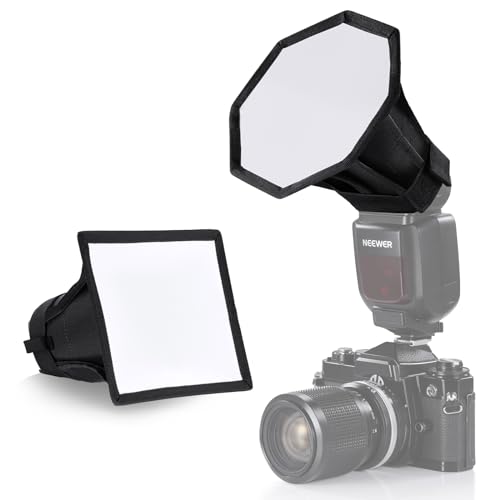 NEEWER Upgraded Flash Diffuser Speedlight Softbox Collapsible 2 Pack, (5.9"/15cm Octagon, 6"x5" Rectangular) for Z2 Z1 V1 Round Head Flashes and Compatible with Godox Sony Nikon Canon Flash, NS5P