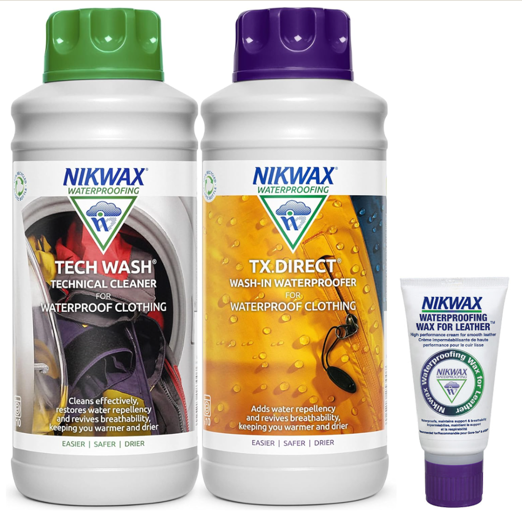 Nikwax Outdoor Protection Kit - cleaning and waterproofing for clothing - includes: Tech Wash 1L | TX.Direct 300ml | FREE 10L Dry Bag