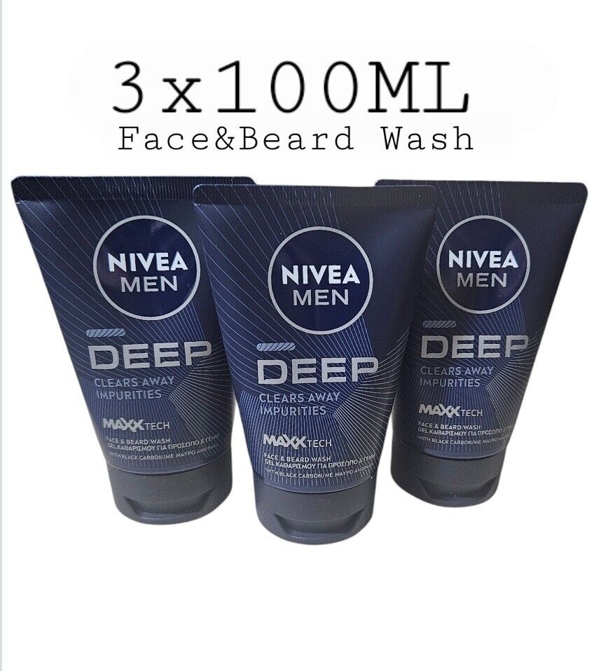 3 x Nivea Men DEEP MAXX TECH clears Away Impurities Face & Beard Wash 3x100ml Pk
