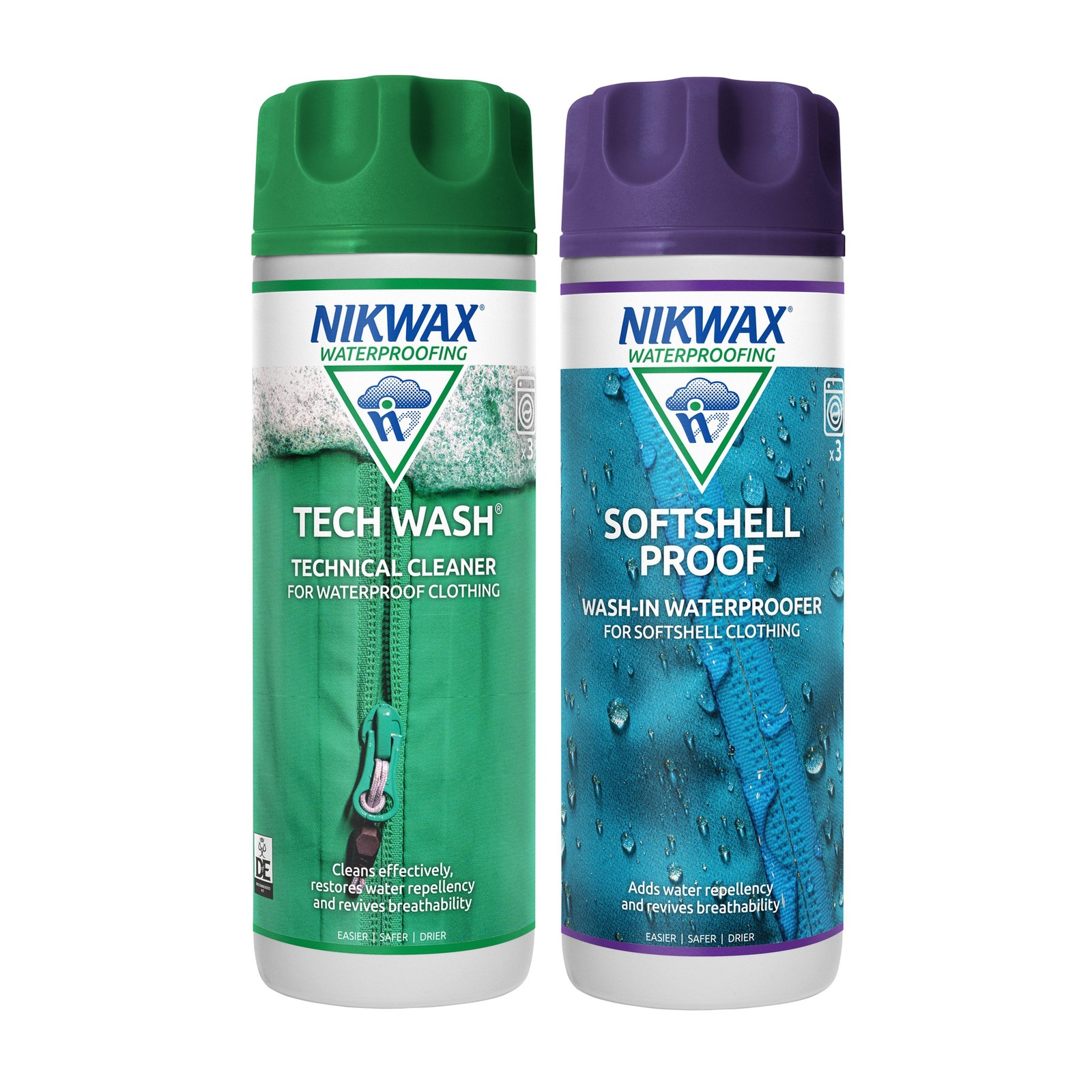 New Nikwax Tech Wash Softshell Proofer Twin Pack 300Ml Fabric Washing