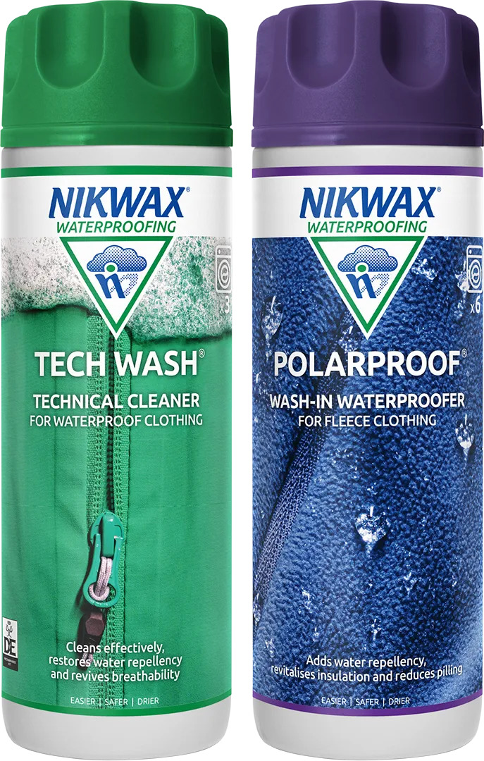 Nikwax TECH WASH 300ML & POLAR PROOF 300ML Twin Pack Clean/Proof Value Pack. Technical Cleaner For Waterproof Clothing and Wash-in Waterproofer For Fleece Clothing. Prolong The Life Of Your Gear