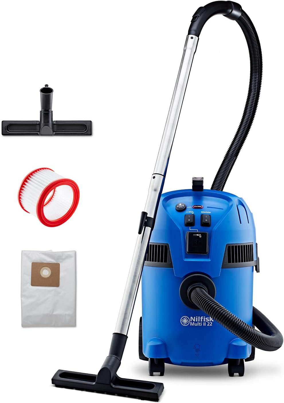Nilfisk Multi II 22L T Wet and Dry Vacuum Cleaner - Garden Outdoor Hoover - Home & Car Interiors (1400 W)