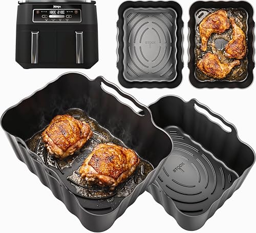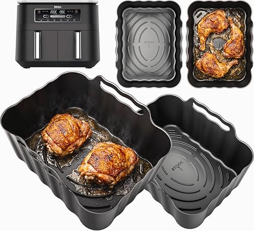 2 Pack Air Fryer Silicone liner for Ninja Dual Air Fryer, Reusable Air Fryer Liners for Ninja AF400UK AF300UK Tower T170889.5L, Air Fryer Accessories for Keplin Instant Vortex EUARY
