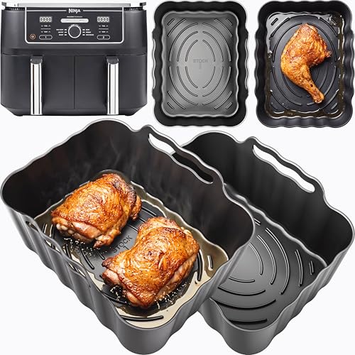 2 Pack Air Fryer Silicone liner for Ninja Dual Air Fryer, Reusable Air Fryer Liners for Ninja AF400UK AF300UK Tower T170889.5L, Air Fryer Accessories for Keplin Instant Vortex EUARY
