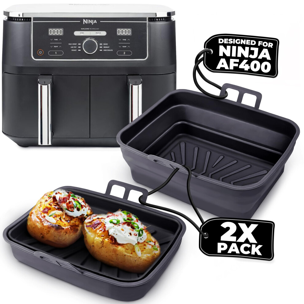 Ninja AF400UK Silicone Liners - 2pcs Reusable Large Silicone Air Fryer Liners for Ninja Foodi MAX Dual Zone AF451 / AF400UK 9.5l Basket/Pot - Ninja