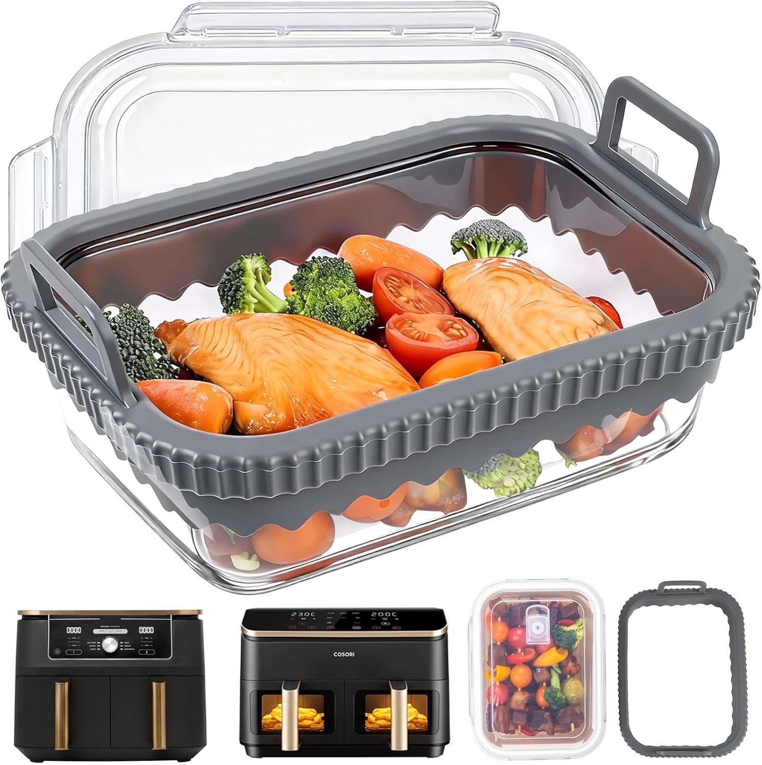 2 Pack Air Fryer Silicone liner for Ninja Dual Air Fryer, Reusable Air Fryer Liners for Ninja AF400UK AF300UK Tower T170889.5L, Air Fryer Accessories for Keplin Instant Vortex EUARY