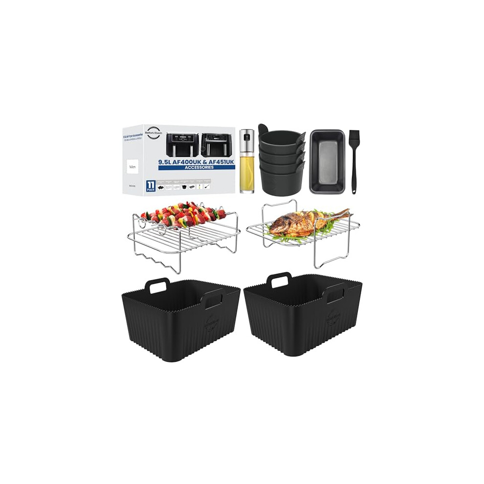 Air Fryer Accessories for Ninja Foodi Dual, AF300UK 7.6L, AF400UK 9.5L, SL400UK, Tower T17088 9L, Set of 11 Including Silicone Air Fryer Liners, Air