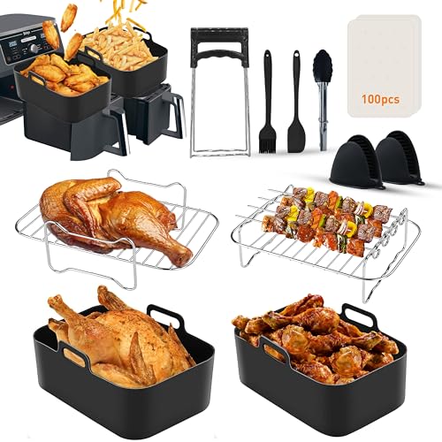 Ninja Air Fryer Accessories, 2Pcs Air Fryer Rack for Grill, Silicone Air Fryer Liners, Air Fryer Paper Liners for Ninja Dual AF300UK AF400UK AF451UK / Tower T17088 Dual Basket Air Fryer 7.6L-9.5L