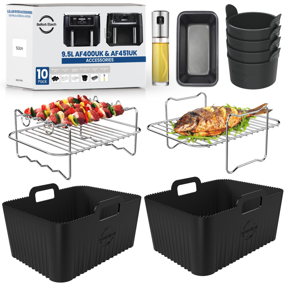 Premium Ninja AF400UK & DZ400UK Accessories | 10 PCS Ninja Air Fryer Accessories | 0.8mm Ridges for Air Flow, 2.5mm Thick, Dishwasher Safe | Specially Designed for 9.5L Dual Air Fryer