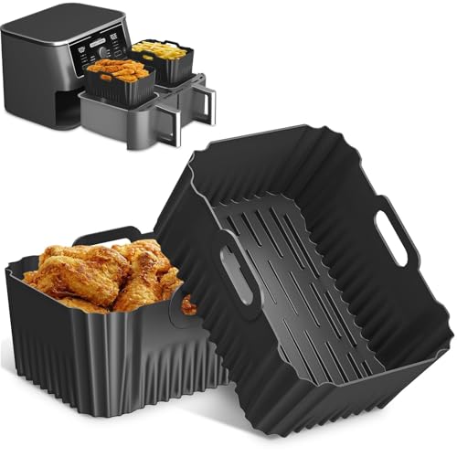 2Pcs Silicone Air Fryer Liners for Ninja Dual AF400UK AF300UK KEPLIN SL400UK Tower, Reusable Airfryer Accessories for EUARY Best Cookwise Instant Vortex MONCOOK 7.6-9.5L