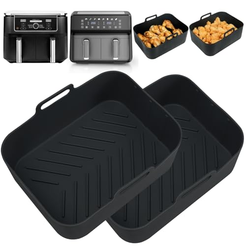 YQL Large Silicone Air Fryer Liner for Ninja AF451UK/AF400UK/SL400UK/SL400UKCP 9.5L/Instant Vortex/Salter/Emtronics Dual Air Fryers, Air Fryer Accessories Air Fryer Liners Reusable 2PCS