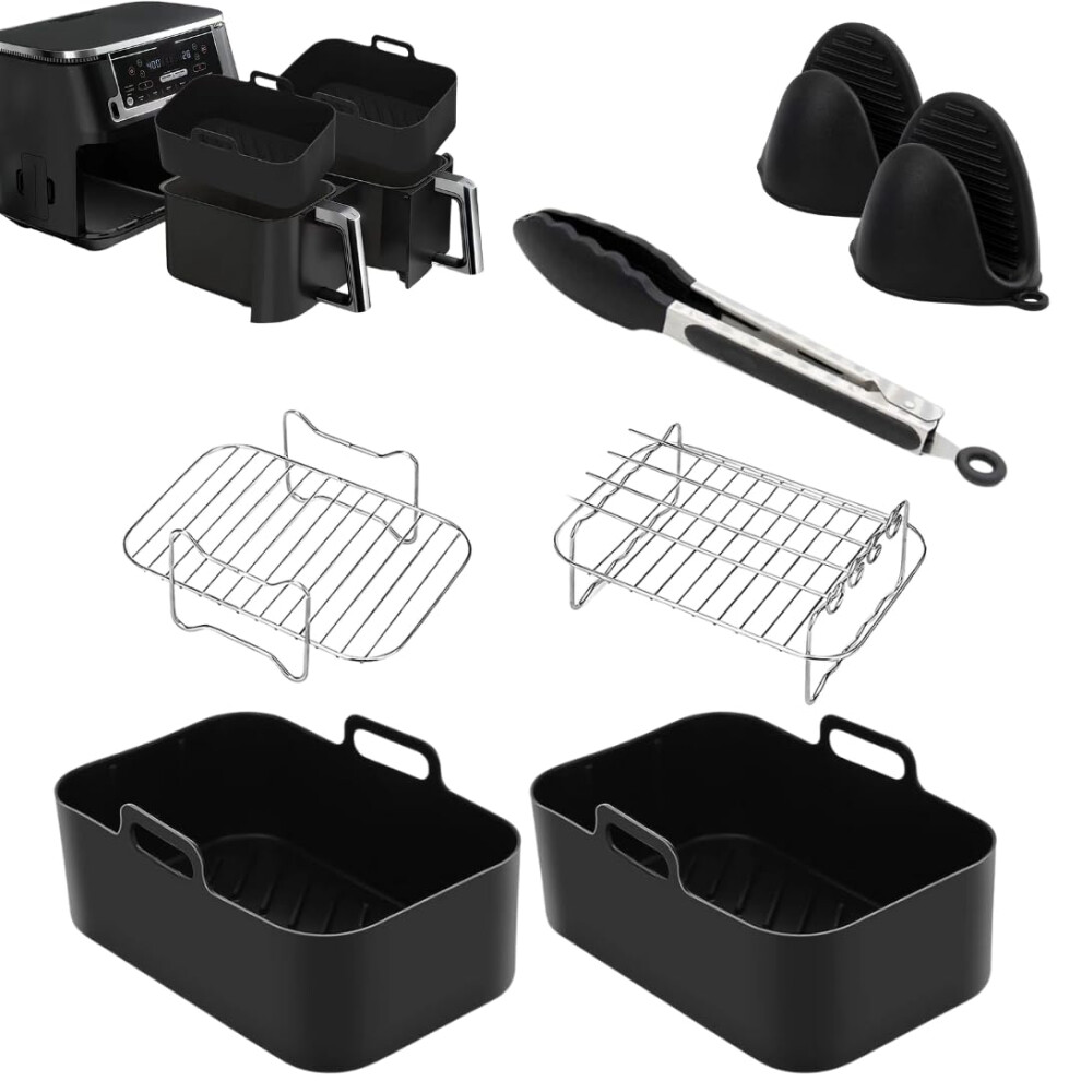 Air Fryer Accessories, 8pcs for Ninja Dual AF400UK & Tower T17088 & AF300UK, Dual Silicone Air Fryer Liners & Gloves, Air Fryer Rack & Food Tong &